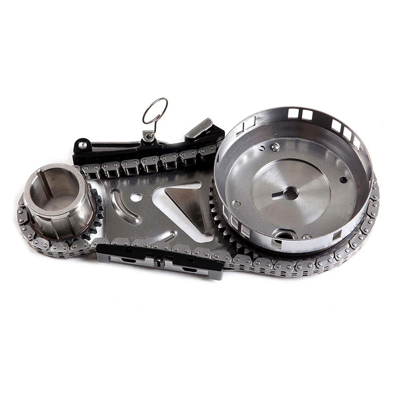 Комплект ланцюгів часу, як незамінний компонент автомобіля, виготовлений з металу і має компактну структуру з високою ефективністю передачі. Це може гарантувати, що двигун може відкрити та закривати клапани у відповідний час, досягаючи нормальних процесів всмоктування та вихлопу. Він приймає мовчазну конструкцію форми зубів, яка не тільки працює безперебійно і має низький рівень шуму, але також має високу здатність та надійність навантаження, і може бути майже без технічного обслуговування, що є ключовим фактором для ефективної та стабільної роботи двигуна.