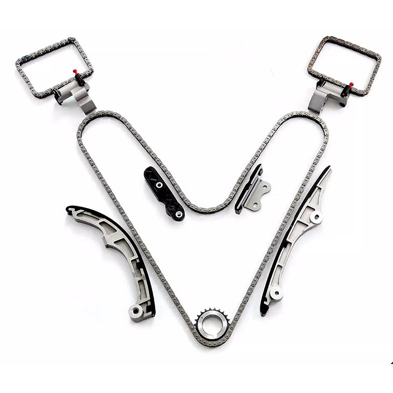 Комплект ланцюгів часу є важливим компонентом автомобільних двигунів, виготовлених з металу та характеризується компактною структурою, надійною передачею та довговічністю. Це гарантує, що двигун відкриває або закриває клапани в потрібний час, досягаючи ефективної роботи. Тим часом набір ланцюгів часу майже не містить технічного обслуговування протягом життя і має високу потужність навантаження та ефективність передачі, що дозволяє двигуну стабільно працювати тривалий час, знижуючи рівень відмов та витрати на обслуговування.