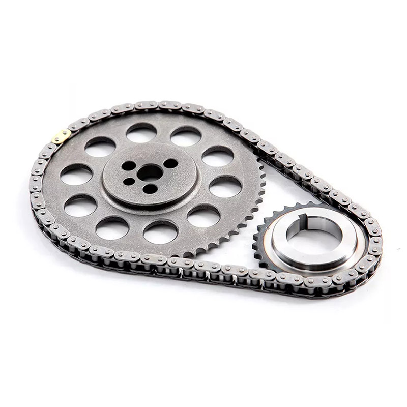 Комплект ланцюга ГРМ є важливою складовою автомобільних двигунів, виготовлених з металу, з компактною конструкцією та високою ефективністю трансмісії, що забезпечує тривалий термін служби. Натягувач гарантує, що ланцюг ГРМ завжди знаходиться в оптимальному стані натягу, що ще більше підвищує надійність його передачі. Крім того, витрати на технічне обслуговування комплекту ланцюга ГРМ є відносно низькими, оскільки він не легко піддається забрудненню та корозії, що широко використовується в автомобільній промисловості та є незамінною частиною автомобільних двигунів.